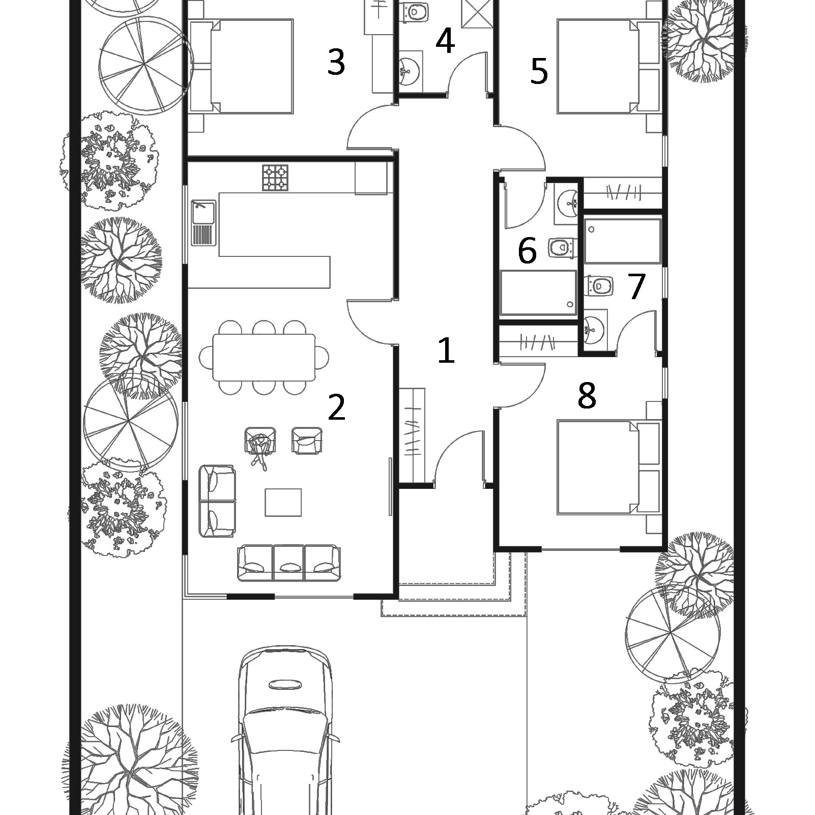 Projemizde giriş holü; bina orta hattı boyunca uzatılarak geçirgen ve kompakt bir plan çözümü yapılmıştır. Açık planlı mutfak tasarımıyla bu fikir güçlendirilmiştir. Rustik tarzda yüksek tavanlı çatı kurgusu ile ferah ve aydınlık mekanlar oluşturulmuştur.