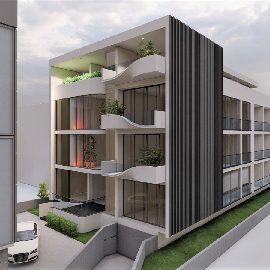 Apart otel bahçesinde; havuz-vitamin bar, çocuk oyun alanına, 9 adet tek odalı, 3 adet iki odalı daireden oluşan bir yapıdır. Otel binası da bodrum katında 8 araçlık kapalı, 6 araçlık açık otoparka sahiptir. Showroom uluslararası örnekleriyle eş standartlarda cam cephe sistemi ile kaplanmıştır. Otel bölümü giriş cephesi de benzer şekilde eğrisel çizgiler ile karşılama etkisi yüksek bir mekan olarak tasarlanmıştır.